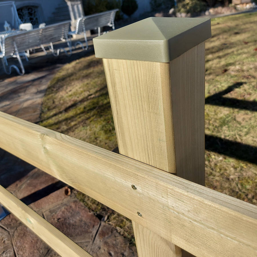 Tutti i pali utilizzati per la staccionata in legno sono elementi torniti, con teste raccordate a corona, esenti da cromo e arsenico.