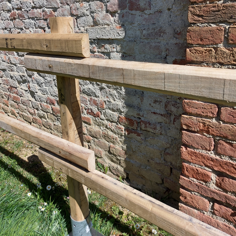 Ogni modulo è composto da 1 piantone verticale e da 2 traverse orizzontali. Scopri come realizzare la tua staccionata in legno di castagno scorrendo verso il basso!