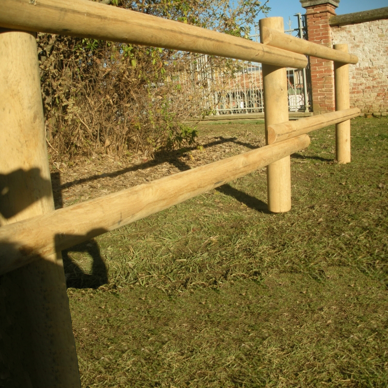 Staccionata in Legno di Castagno Tornito modello Valdostana con traverse in mezzi pali.