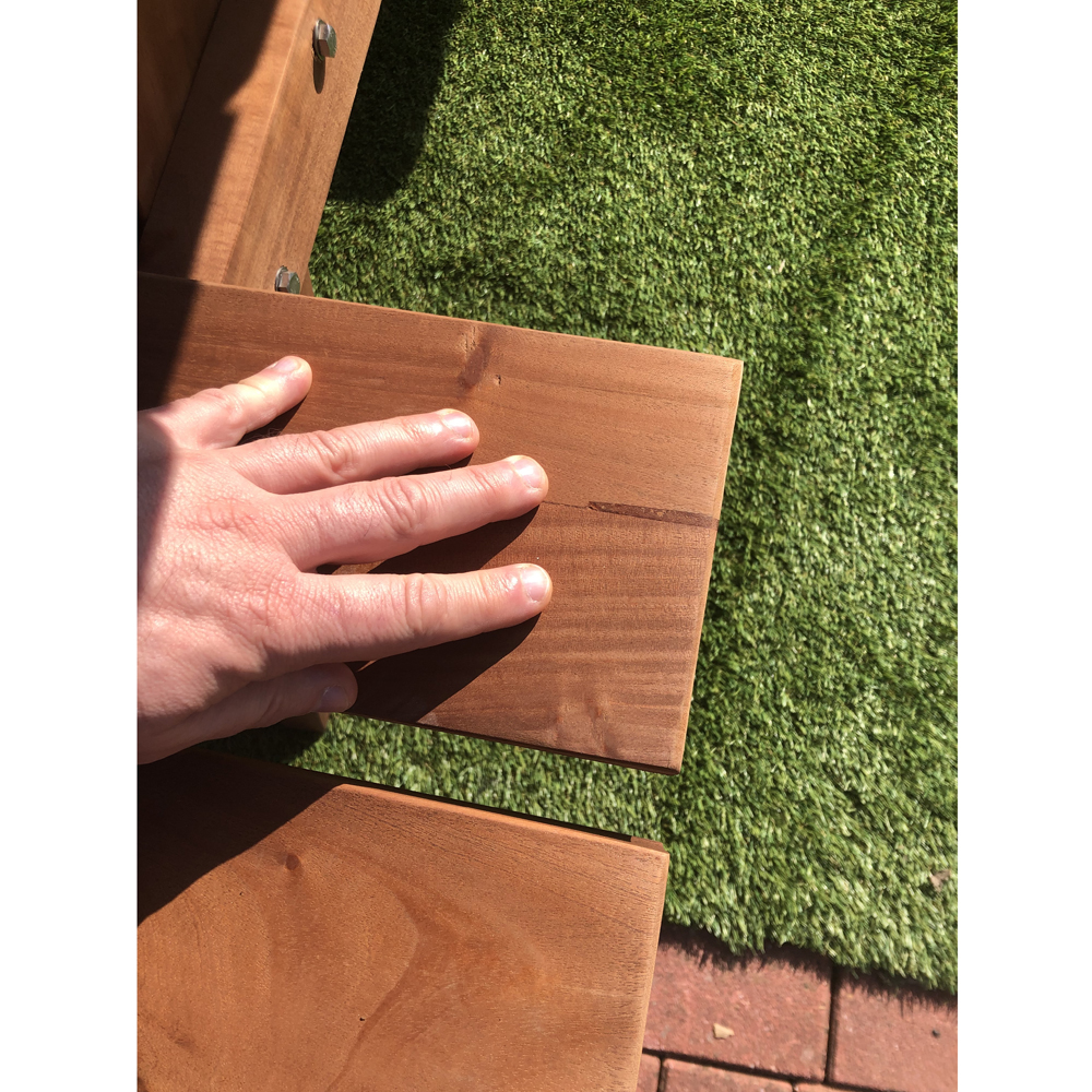 Il legno Hardwood è perfettamente levigato non perde schegge o resina, particolarmente indicato quindi in tutte le situazioni ” a gambe nude” di bambini e signore. Inoltre non teme sale e uminidità Per questo motivo il modello è particolarmente adatto a Piscine e Stabilimenti Balneari!