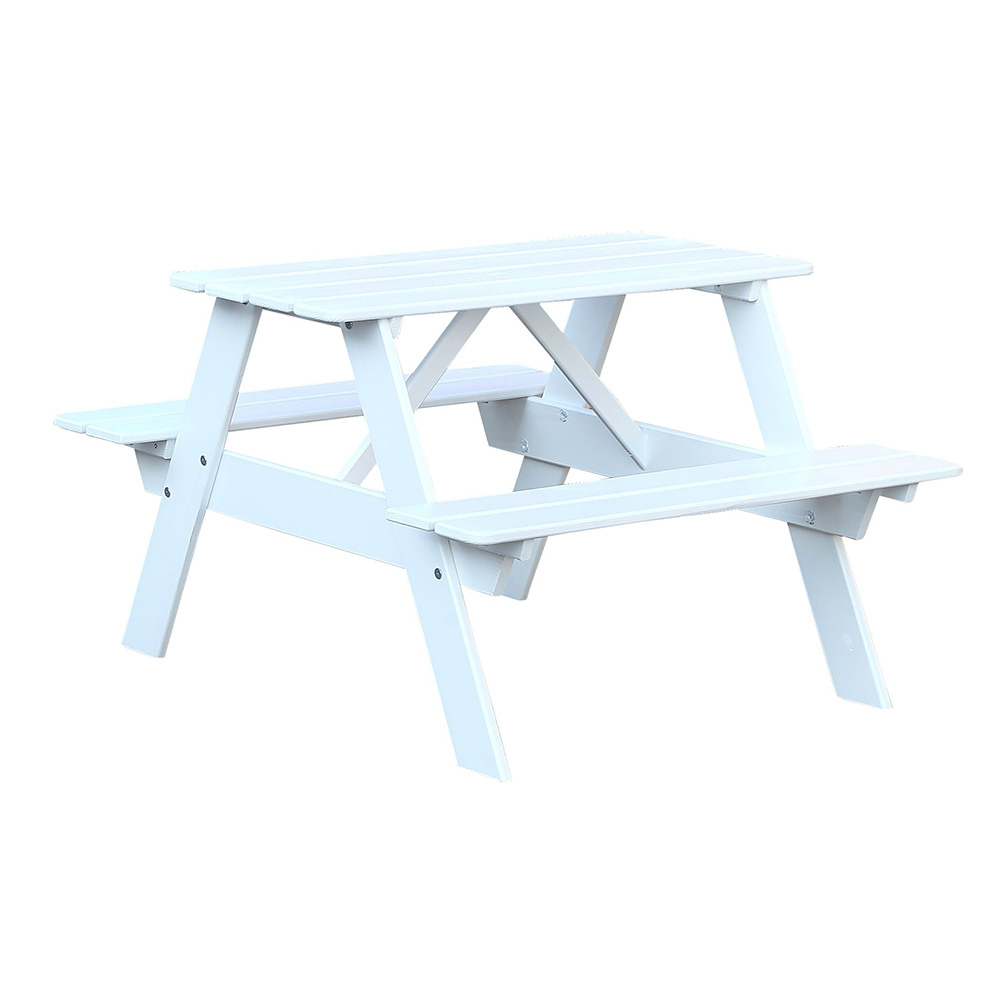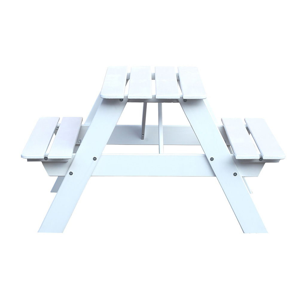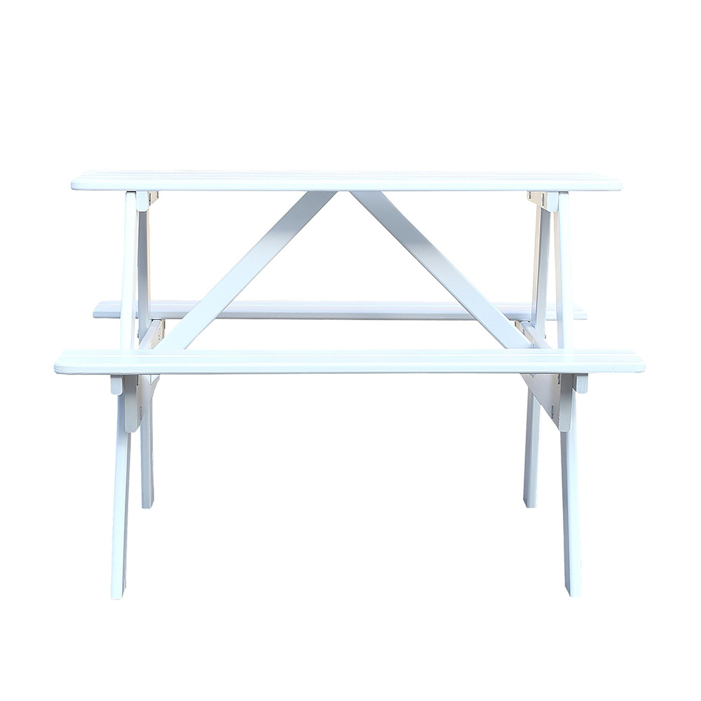 Il tavolo Picnic per Bambini è realizzato in legno verniciato bianco, pronto per l’uso esterno senza bisogno di trattamenti.