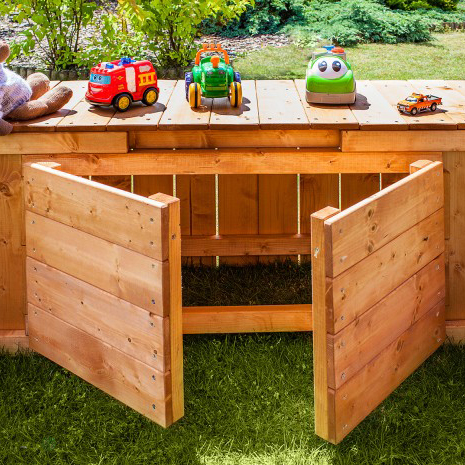 Baule in Legno per contenere i Giocattoli utilizzabile anche come Bancone o Tavolo, Accessorio per Personalizzare i Tuoi Parco Giochi da Giardino Fungoo
