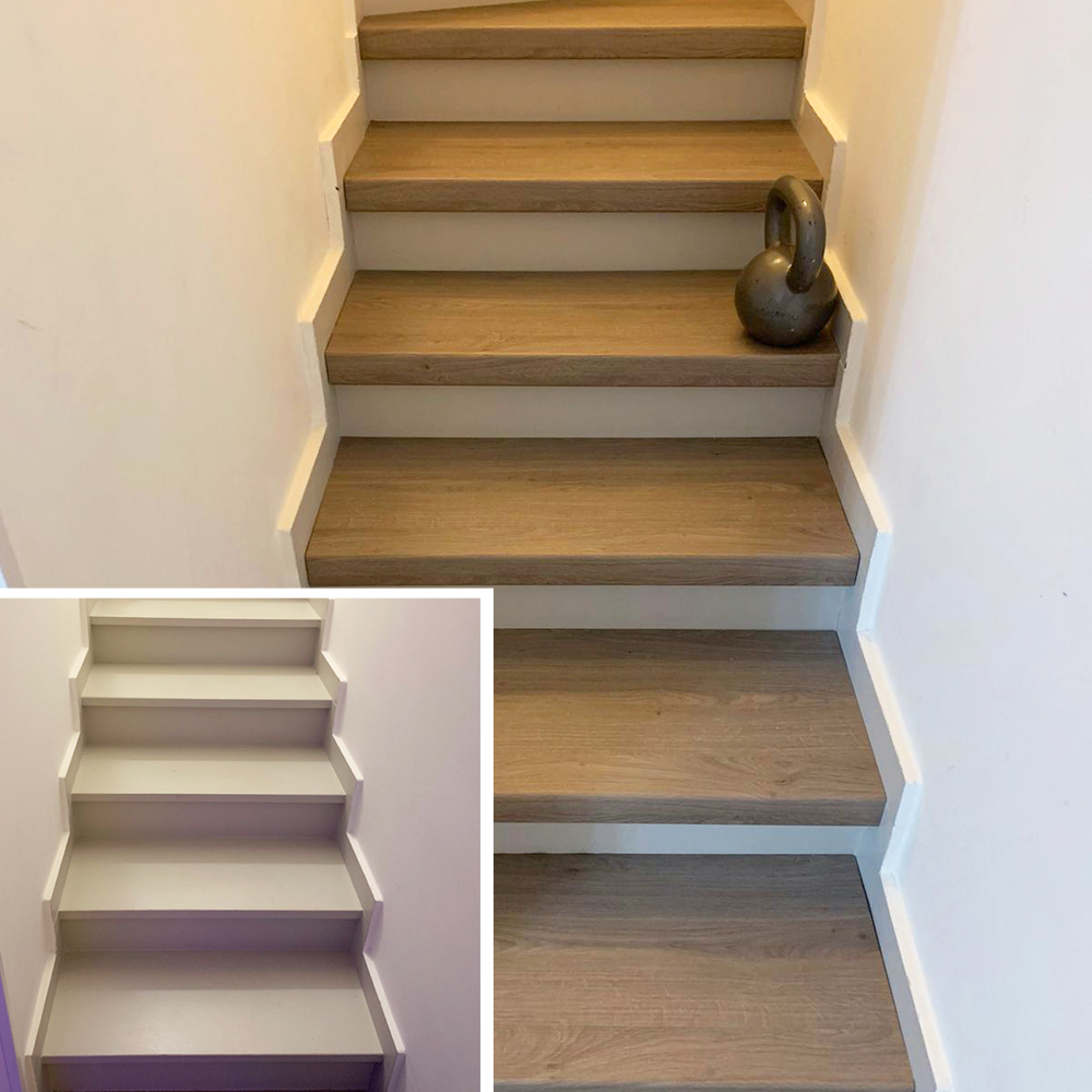 La Posa è semplice e veloce adatta anche ai meno Esperti. In una giornata potrai restaurare la tua vecchia Scala senza lavori di demolizione. Ti serviranno solo i Rivestimenti per Scale Interne Maestro Steps (Gradini ed eventuali Accessori), una classica Colla per Laminati e un Seghetto Elettrico.
