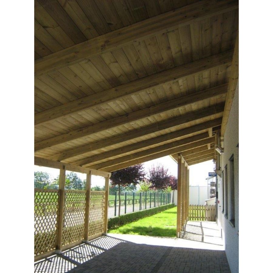 Perline in legno di abete impregnato pronte per uso esterno con incastro maschio-femmina. Adatte a creare coperture stabili e solide per strutture da esterno come pergole, porticati, pergole…