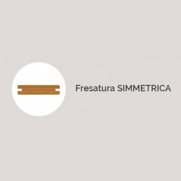 Nella Posa Simmetrica prima necessita della fresatura uguale su entrambi i lati; in questo caso nel risultato finale i listoni avranno una via di fuga di alcuni millimteri.