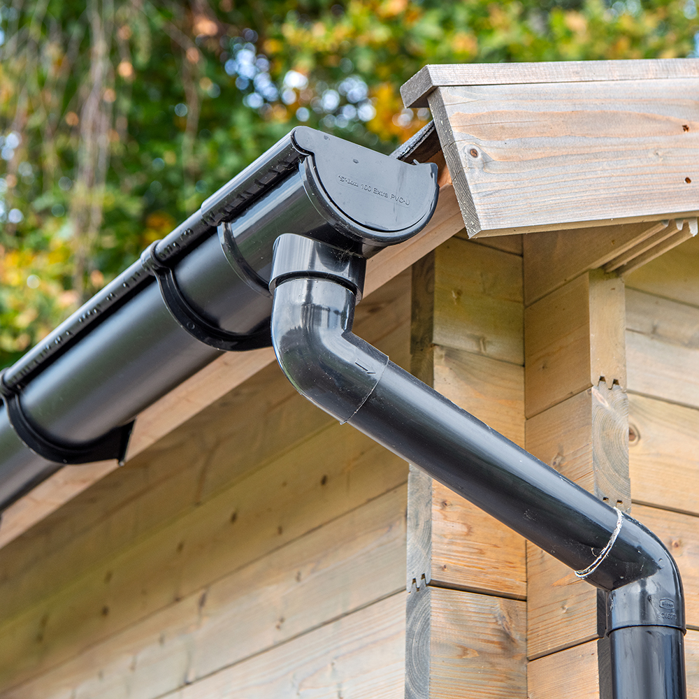 La grondaia proteggerร ulteriormente la tua casetta dall’acqua e dall’umiditร facendo defluire l’acqua piovana e la neve nel corso dello sciogliemento.