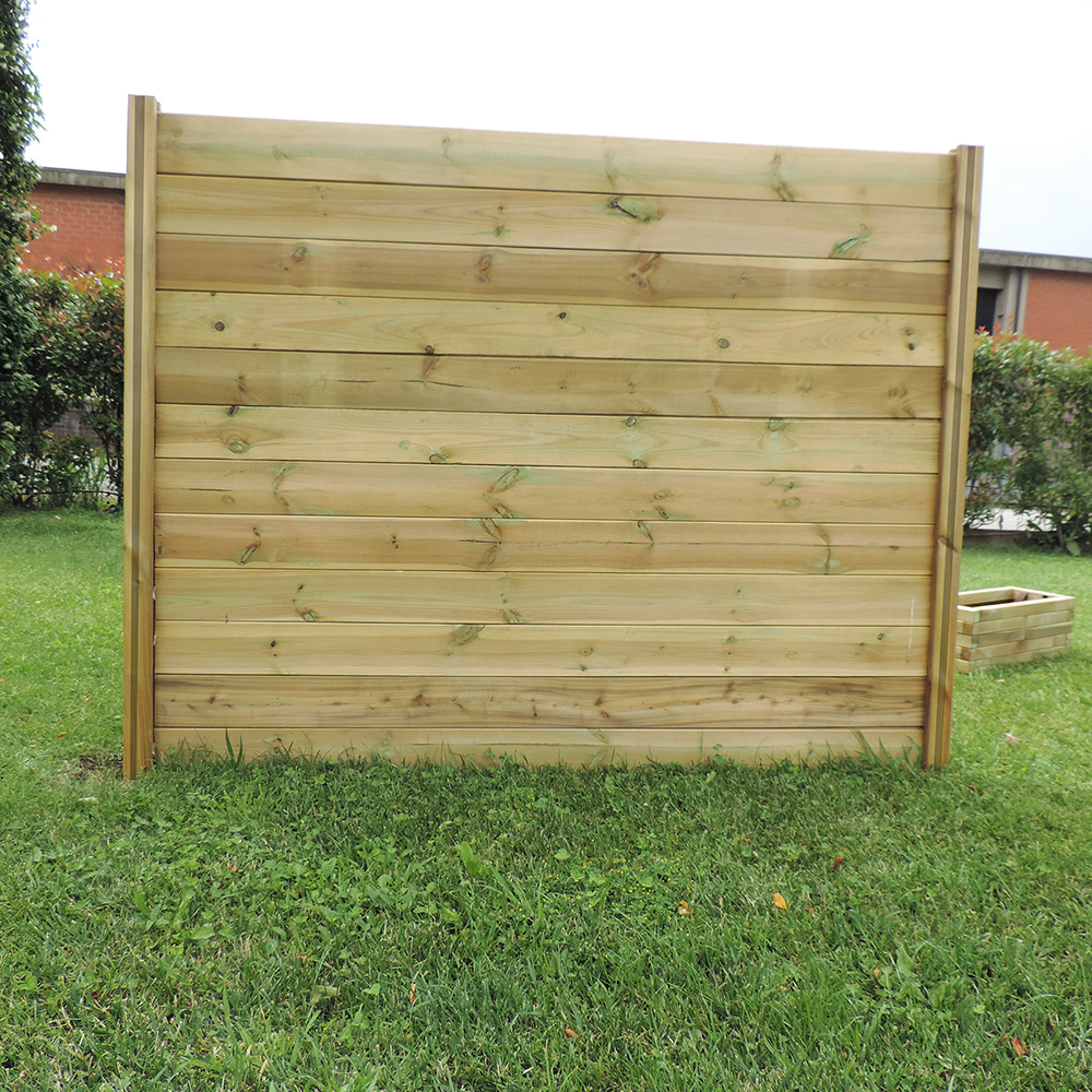 Inoltre tutti gli elementi del frangivista fai da te (perni e perline) sono essicati 18%, in legno di pino trattato in autoclave classe 4 (16,7 Kg/M3 di Tanalith E3475 esente cromo e arsenico).
