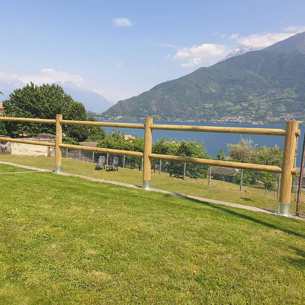 Staccionata interamente realizzata in legno di pino massiccio trattato in autoclave classe 4 come protezione per uso esterno.