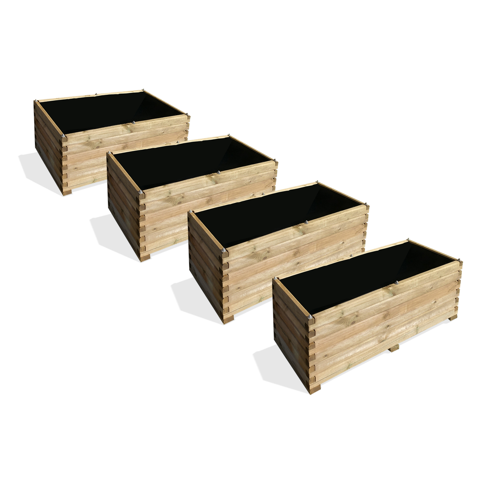 SET composto da 4 Fioriere in legno di Alta Qualità realizzate in legno di pino impregnato autoclave, pronte per uso esterno senza necessità di trattamento per esterno.