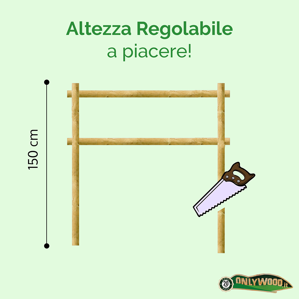 - altezza dei piantoni 150 cm totali – dopo l’acquisto, puoi tagliare i pali dell’altezza adatta alle tue necessità!